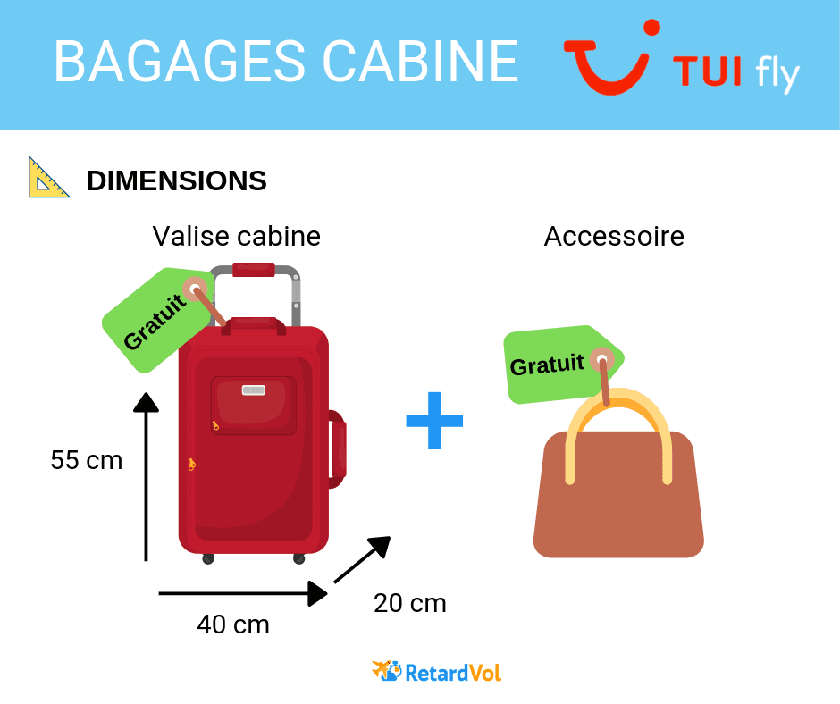 Avec Tui Fly vous avez le droit à votre petite valise cabine + un sac à main gratuit.